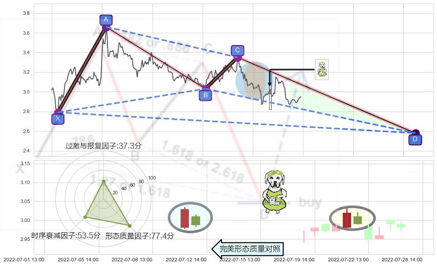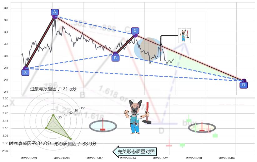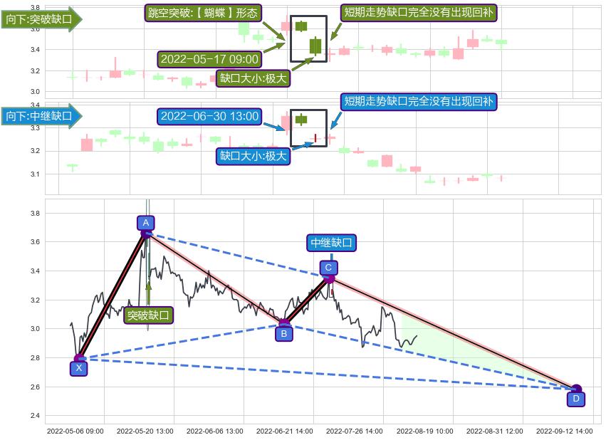 ➢ 【蝴蝶】形态 🔜 中继缺口 🔜 突破缺口 综合量化分数:43.35 【偏空】