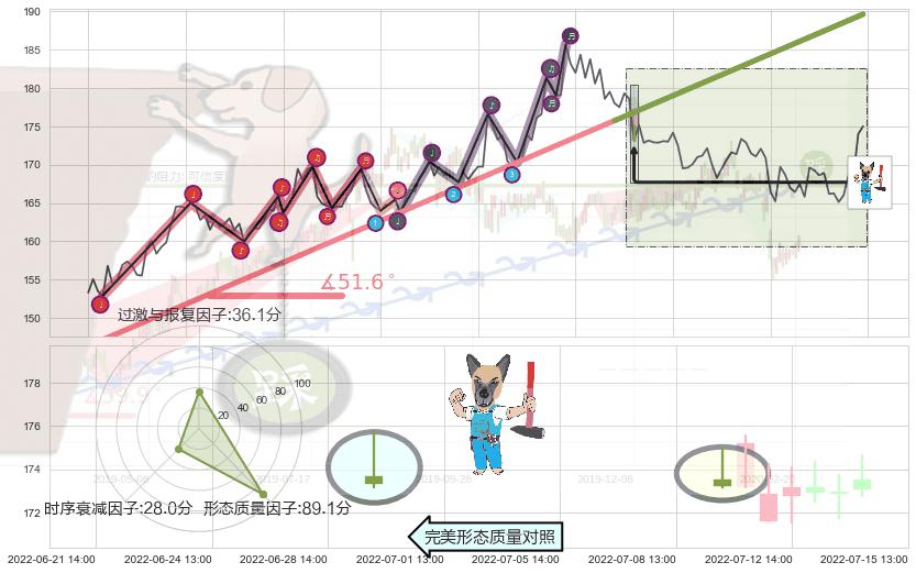 从2022-05-26 10:00至2022-07-07 13:00,共包含106个小时,阶段股价上涨15.87%,阶段股价变动位移路程比: 1 : 5,上涨趋势角度: 51.6