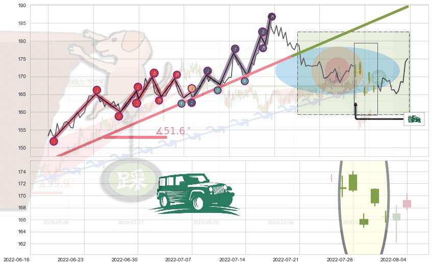 ♘ 阻力价格位185.70,可信任强度56.40%,距离最后交易2022-08-12 14:00形成的收盘价格175.01相差 +6.11%