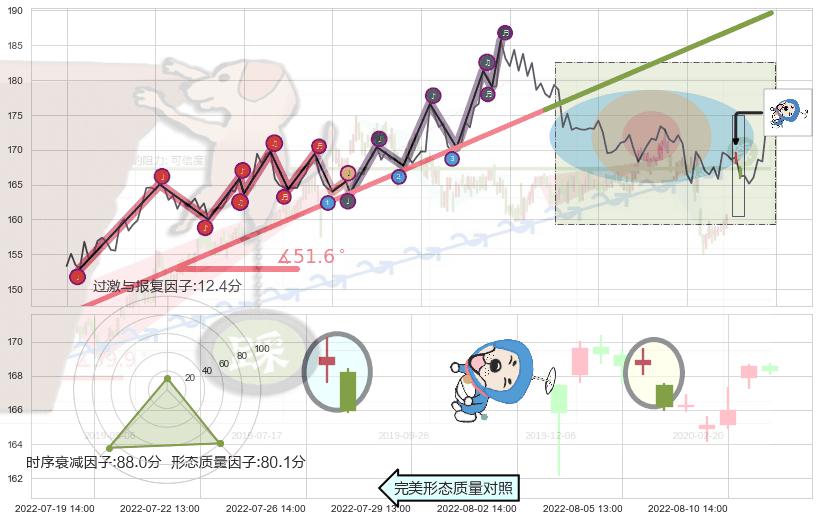 从2022-06-16 14:00至2022-06-22 14:00,共包含12个小时,阶段股价上涨1.28%,阶段股价变动位移路程比: 1 : 8