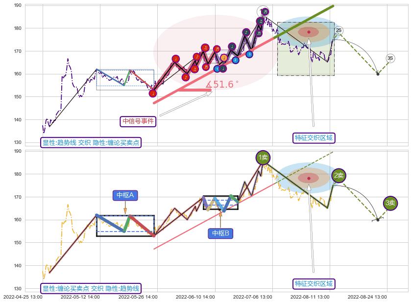 ➣ 缠论买卖点:猜想2卖持续蓄力下跌至3卖 → 下跌 → 风险信号 → 小趋势跟踪