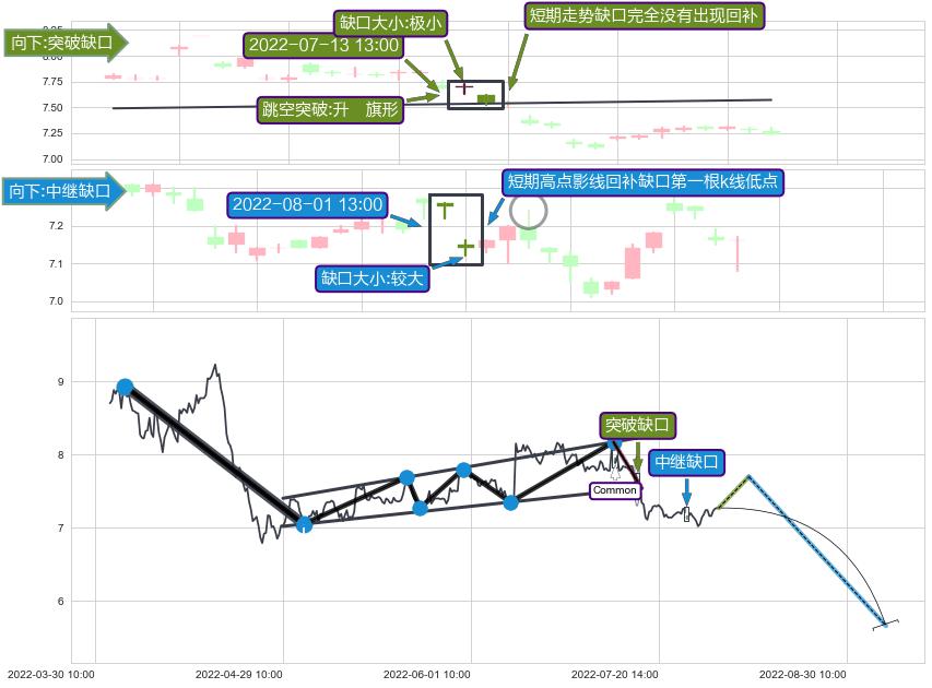 ➢ 2022-08-01 13:00形成:向下跳空【中继】缺口