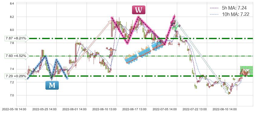 ➢ 【仅预测突破】最后价格:7.27与预测突破价格:7.50→【空间中等】后续最小【整理】第一目标价格→(08-29:11: 8.30 )