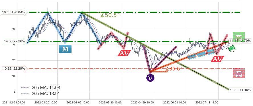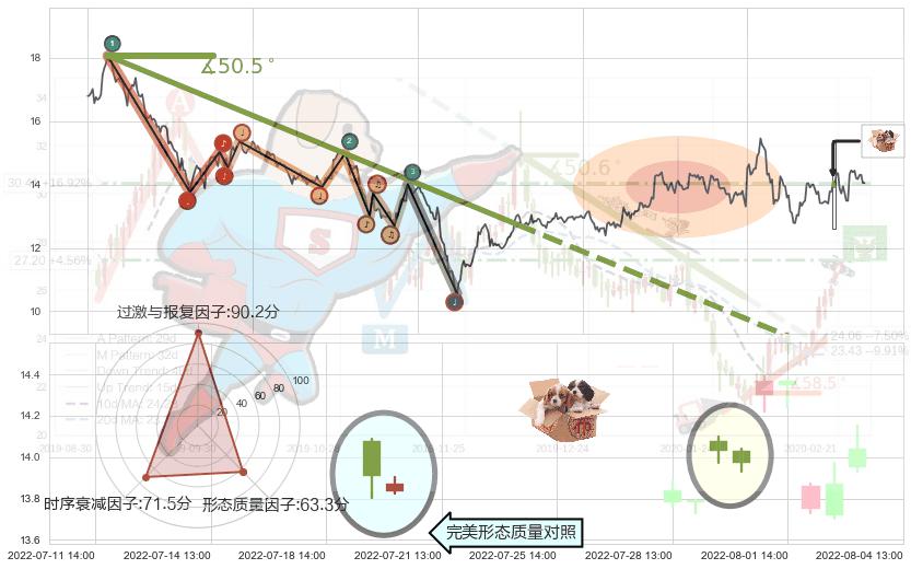 ♘ 阻力价格位14.38,可信任强度76.32%,距离最后交易2022-08-12 14:00形成的收盘价格14.05相差 +2.36%