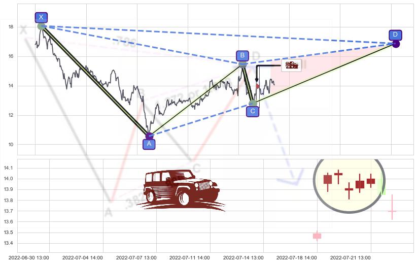 ➣ D点拟合预测价格16.87,距离最后交易收盘价格14.05相差 +20.06%