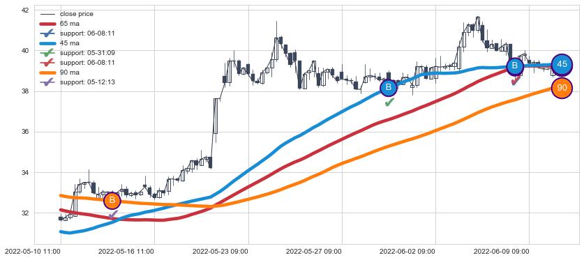 ➢ 发现最优均线组合: 45 , 65 , 90