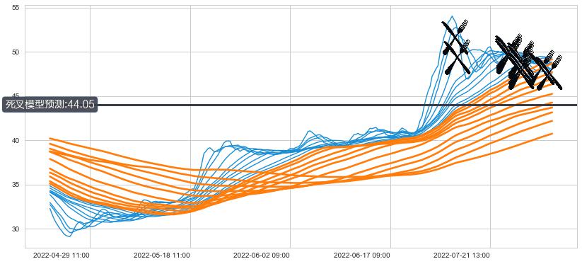 ➣ 40小时均线于(07-27 14:00: 49.91)形成【死叉】基于【死叉历史模型】预测死叉后最低波谷价格: 46.11, 死叉后最低价格46.55,尚未达到预测最低波谷价格, 预期继续下跌