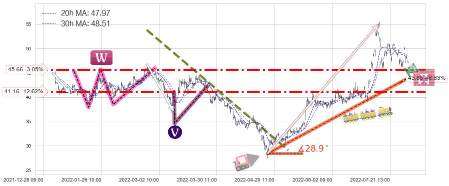 ➣ 【仅预测突破】最后价格:47.10与预测突破价格:49.44→【空间较大】后续最小【整理】第一目标价格→(08-19:14: 58.03 )