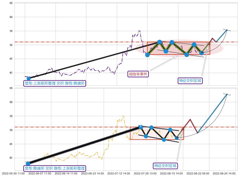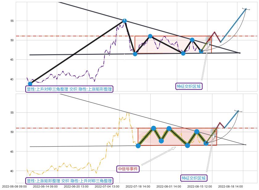 ➢ 上涨矩形整理属【中级别信号事件】上升对称三角整理属【长级别信号事件】中长周期组合信号事件,中长事件长度比39.13%