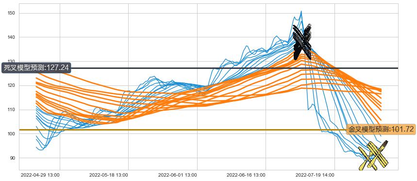 ➢ 35小时均线于(07-01 14:00: 140.29)形成【死叉】基于【死叉历史模型】预测死叉后最低波谷价格: 129.98, 死叉后最低价格87.05,已经下跌超出预测最低波谷价格, 预期反弹