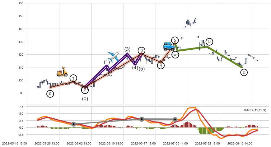 ➣ ['回调abc识别为: 【锯齿型调整浪】 ', '锯齿型:子浪535结构 ⓑ点振幅较小,ⓒ点继续发力远超ⓐ点结束位置']