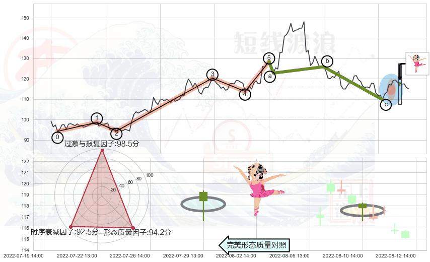 从2022-08-03 14:00至2022-08-12 14:00,共包含13个小时,阶段股价上涨4.85%,阶段股价变动位移路程比: 1 : 2