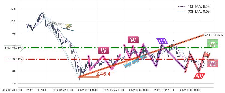 ♞ 10小时均线:8.30,20小时均线:8.25→ 快线>慢线