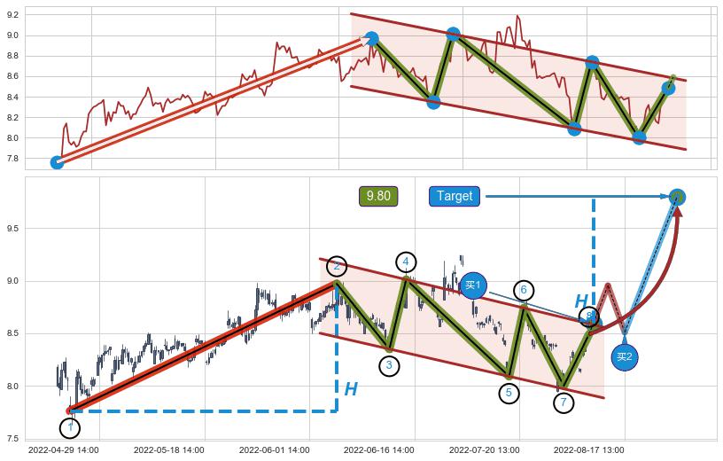 ➣ 最小中继整理涨幅→𝐇: 1.2100 (𝐇旗杆的长度:旗杆起点→顶点)