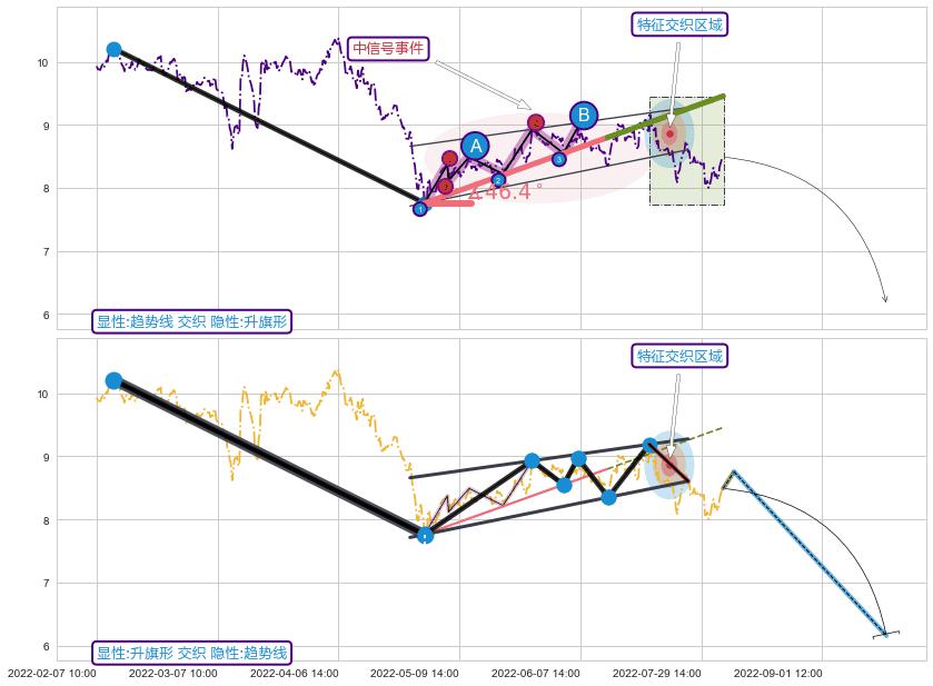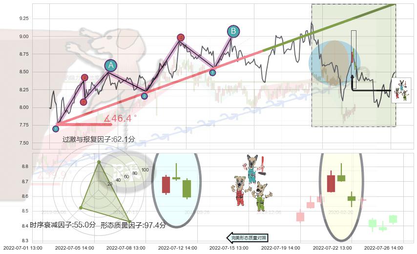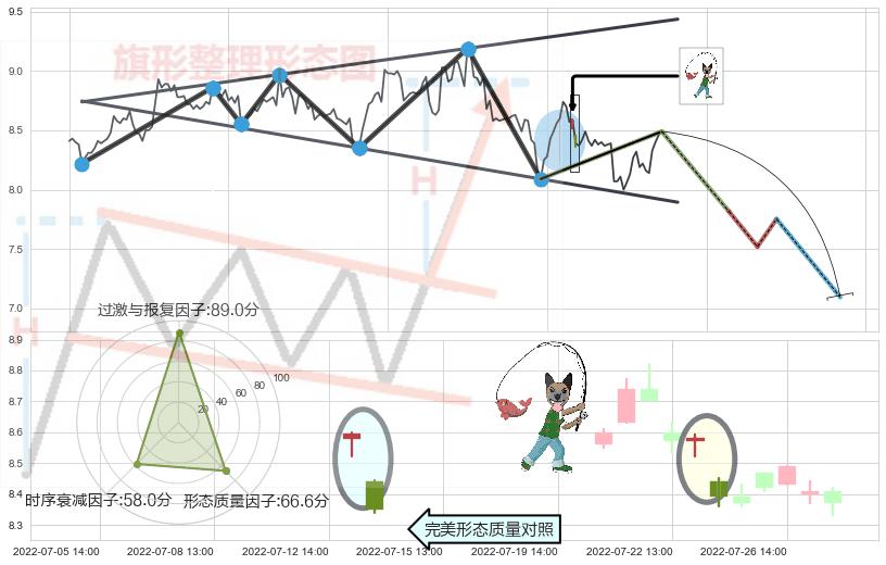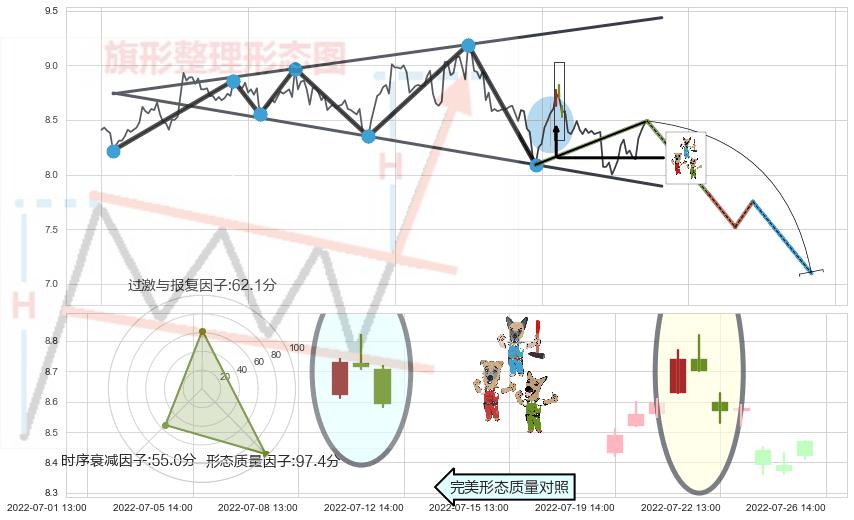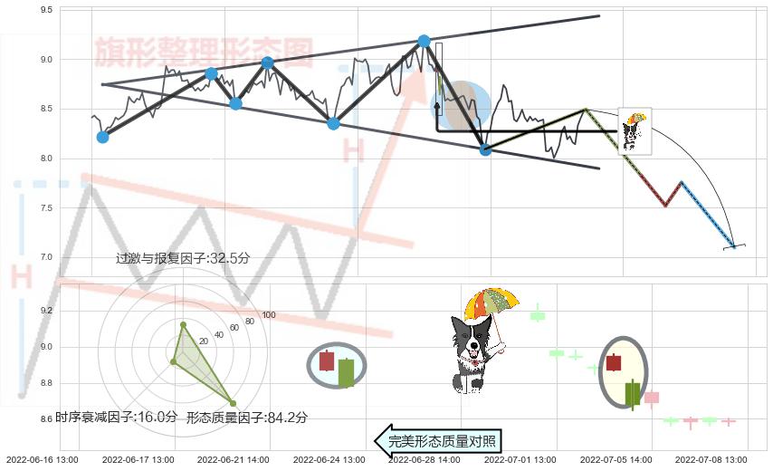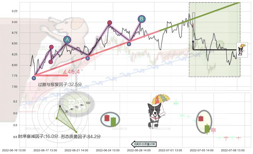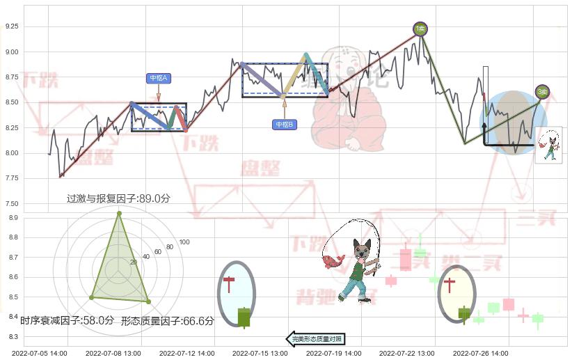 从2022-06-07 11:00至2022-07-15 14:00,共包含83个小时,阶段股价下跌-9.70%,阶段股价变动位移路程比: 1 : 7