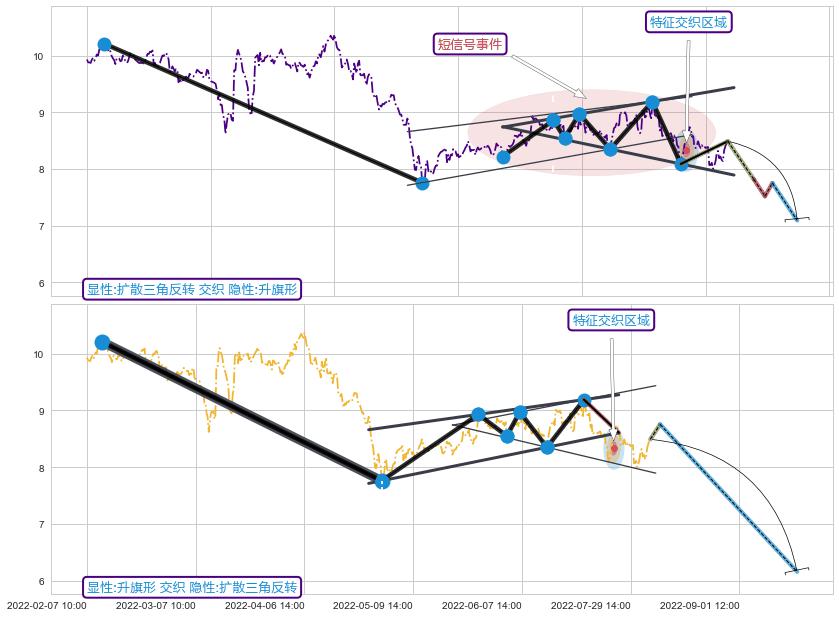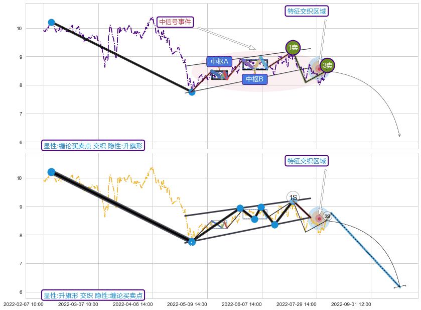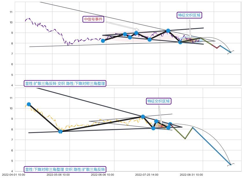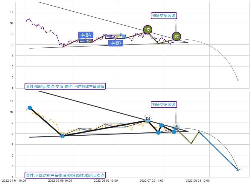 ➢ 缠论买卖点与下降对称三角整理信号事件周期长度级别相同,同周期信号事件