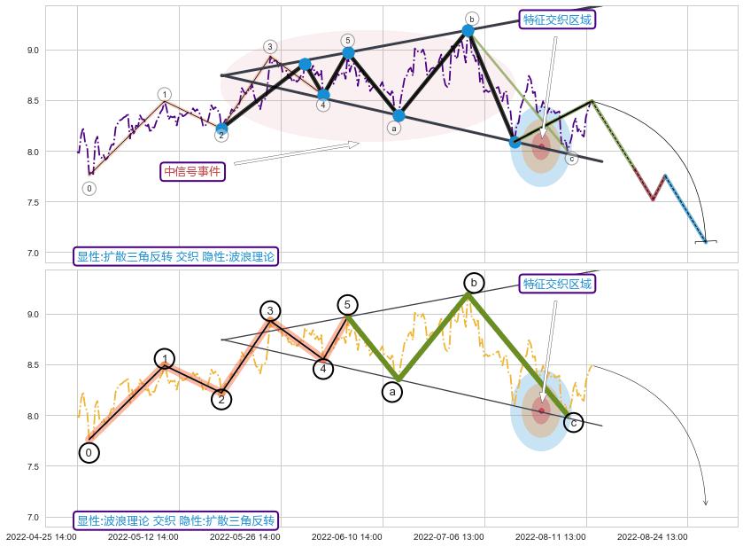 ➣ 波浪理论:猜想击穿破位c点后继续下跌 → 下跌 → 风险信号 → 小趋势跟踪