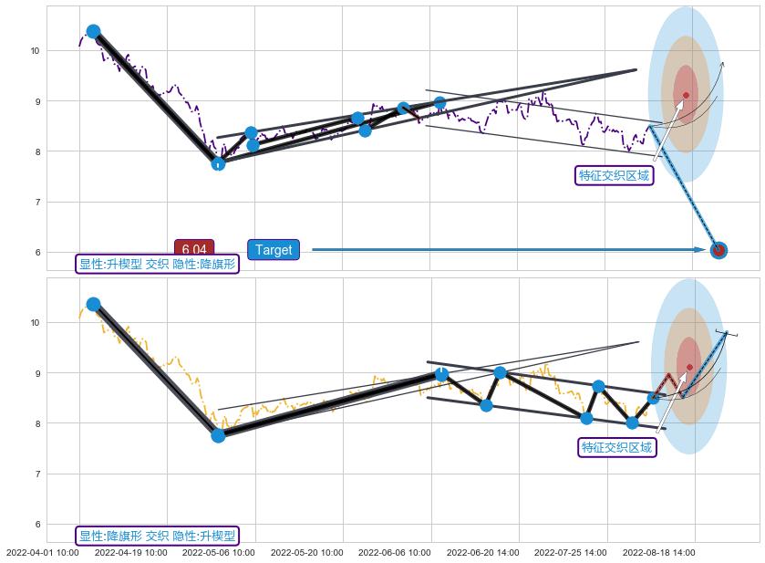 ➣ 扩散三角反转:猜想临近关键支撑位突破点 → 临近拐点下跌 → 风险信号 → 大趋势均值回复
