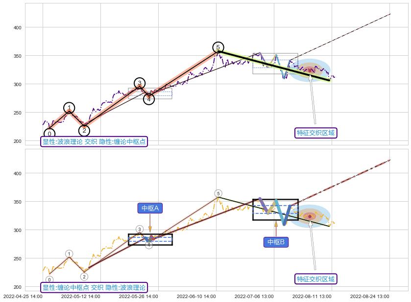 ➢ 波浪理论与缠论中枢点信号事件周期长度级别相同,同周期信号事件