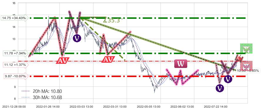 ♘ 阻力价格位11.78,可信任强度89.54%,距离最后交易2022-08-12 14:00形成的收盘价格10.97相差 +7.34%