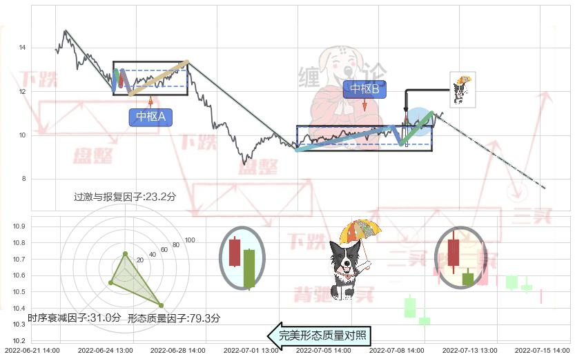 ➣ 下跌螺旋桨 + 缠论中枢点破位中枢B支撑下拉信号叠加后【信号初始稳固度】极低,【看空】信号叠加【可信度影响极小】