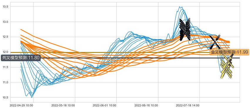 ➢ 60小时均线于(07-05 14:00: 12.60)形成【死叉】基于【死叉历史模型】预测死叉后最低波谷价格: 11.60, 死叉后最低价格11.20,已经下跌超出预测最低波谷价格, 预期反弹