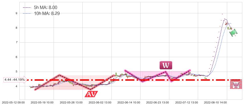 ♞ 5小时均线:8.00,10小时均线:8.29→ 快线<慢线