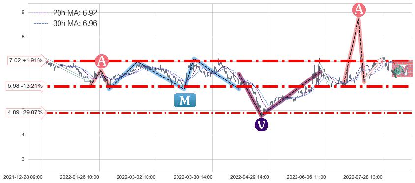 ♞ 20小时均线:6.92,30小时均线:6.96→ 快线<慢线