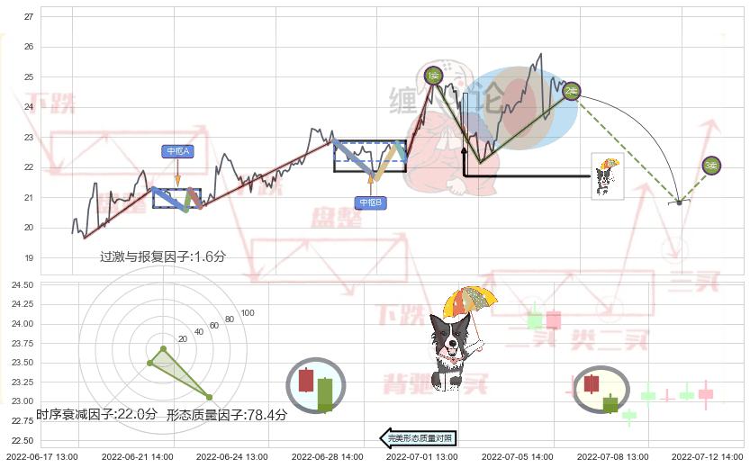 ➢ 🕰 价格走势在2022-07-01 14:00:00至2022-07-04 13:00:00期间形成下跌螺旋桨,残存影响值:-1.76