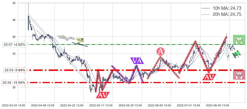 ♞ 10小时均线:24.73,20小时均线:24.75→ 快线<慢线