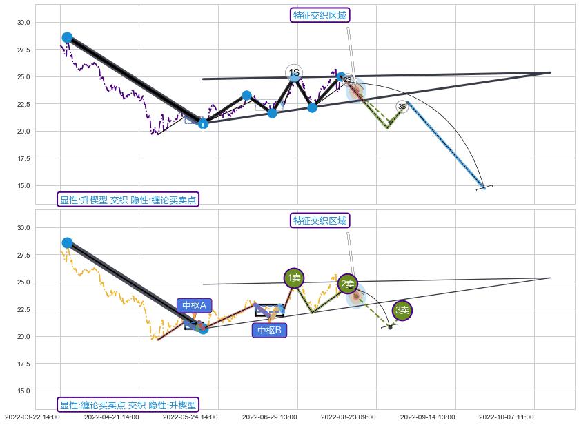 ➣ 缠论买卖点:猜想2卖持续蓄力下跌至3卖 → 下跌 → 风险信号 → 小趋势跟踪