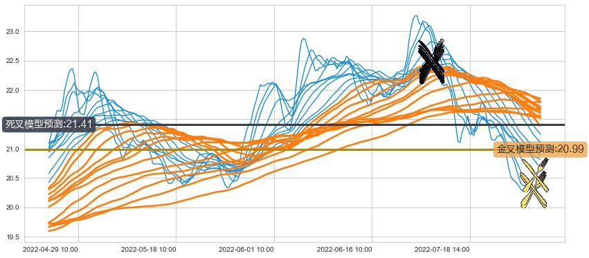 ➣ 60小时均线于(07-04 14:00: 22.40)形成【死叉】基于【死叉历史模型】预测死叉后最低波谷价格: 21.22, 死叉后最低价格19.98,已经下跌超出预测最低波谷价格, 预期反弹