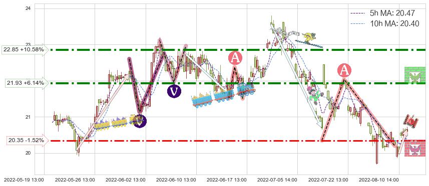 ♘ 阻力价格位22.85,可信任强度71.59%,距离最后交易2022-08-12 14:00形成的收盘价格20.66相差 +10.58%