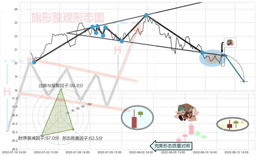 ➢ 🕰 价格走势在2022-08-11 14:00:00至2022-08-12 13:00:00期间形成顶部尽头线(下山虎),残存影响值:-7.30