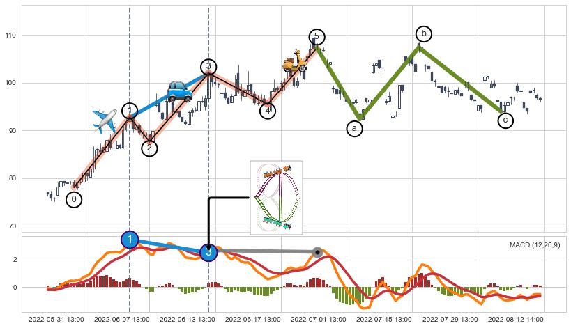 ➣ 波浪理论:猜想达到c点后小回调终止反转上涨 → 上涨 → 【拐点】临近 → 阶段均值回复结束后继续大周期趋势跟踪