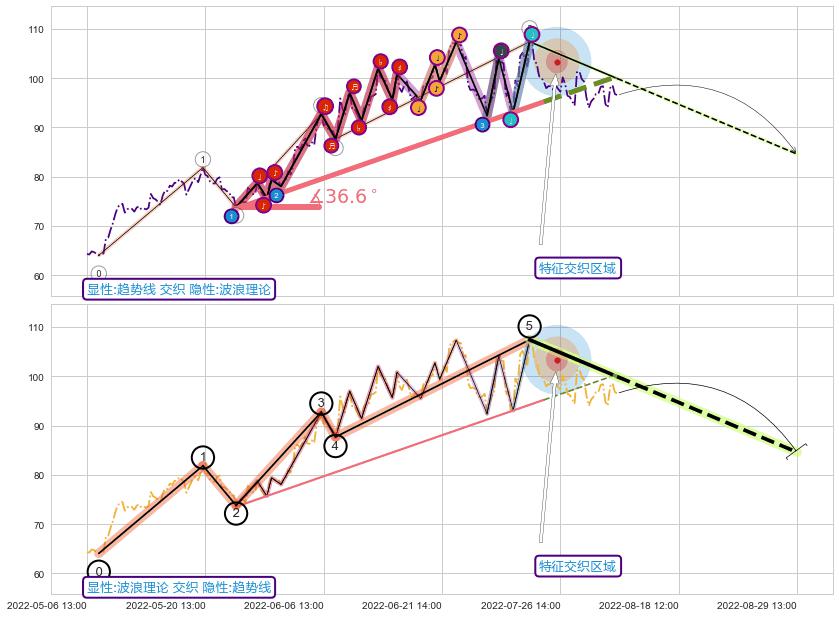从2022-05-25 10:00至2022-07-21 13:00,共包含131个小时,阶段股价上涨33.04%,阶段股价变动位移路程比: 1 : 6,上涨趋势角度: 36.6