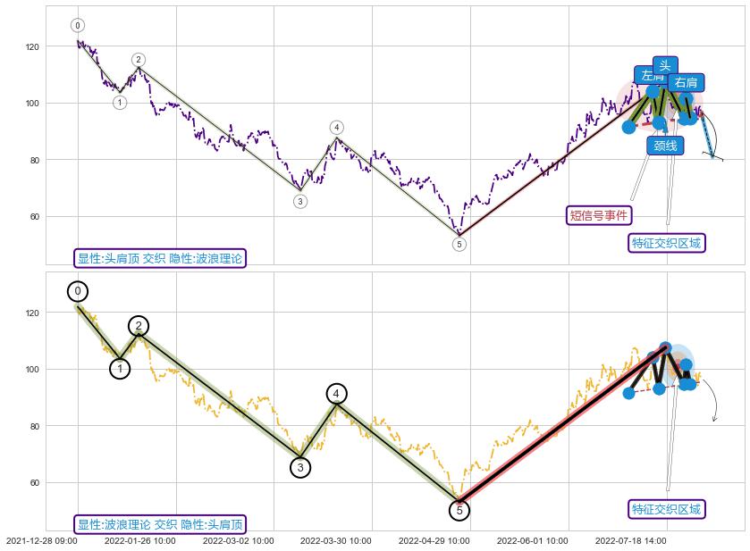 ➢ 头肩顶属【短级别信号事件】波浪理论属【长级别信号事件】长短周期组合信号事件, 短长事件长度比10.67%