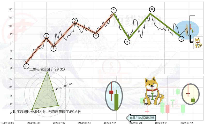 ➢ 波浪理论上涨浪:浪5回调拐点 🔜 趋势线支撑位已破位下跌 综合量化分数:41.95 【偏空】