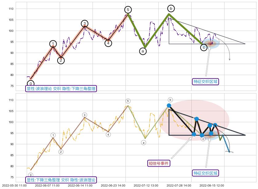 ➢ 下降三角整理属【短级别信号事件】波浪理论属【长级别信号事件】长短周期组合信号事件, 短长事件长度比29.01%