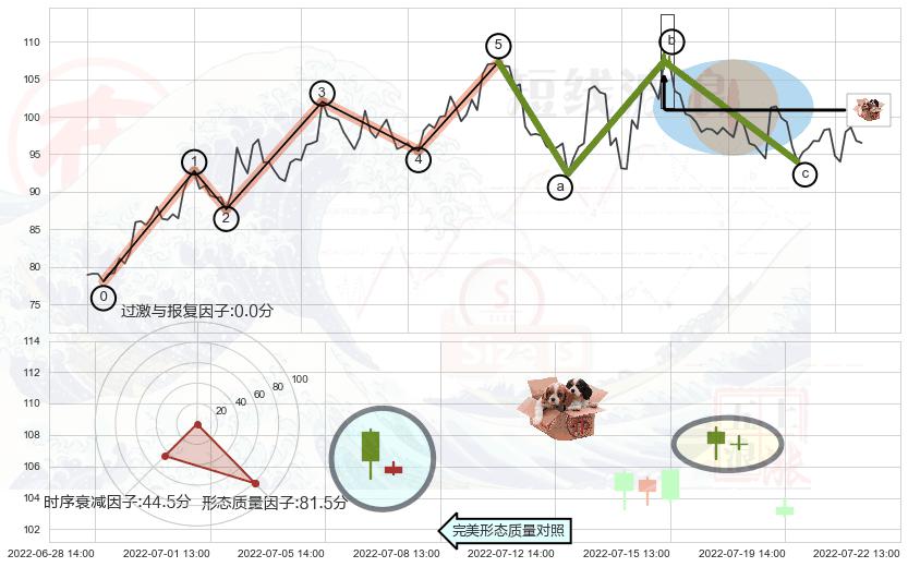 ➢ 🕰 价格走势在2022-07-15 14:00:00至2022-07-19 14:00:00期间形成高档五阴线,残存影响值:-3.63
