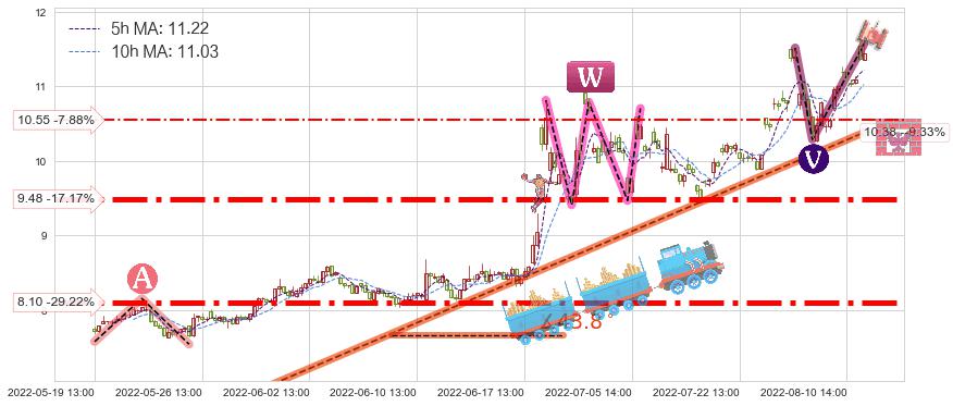 ➣ 预测:2022-08-22 11:00,【小幅回撤】稳定目前上涨趋势的前提下,预测价格:11.19