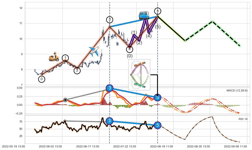 ➣ 波浪理论:猜想达到c点后小反弹终止反转下跌 → 下跌 → 【拐点】临近 → 阶段均值回复结束后继续大周期趋势跟踪
