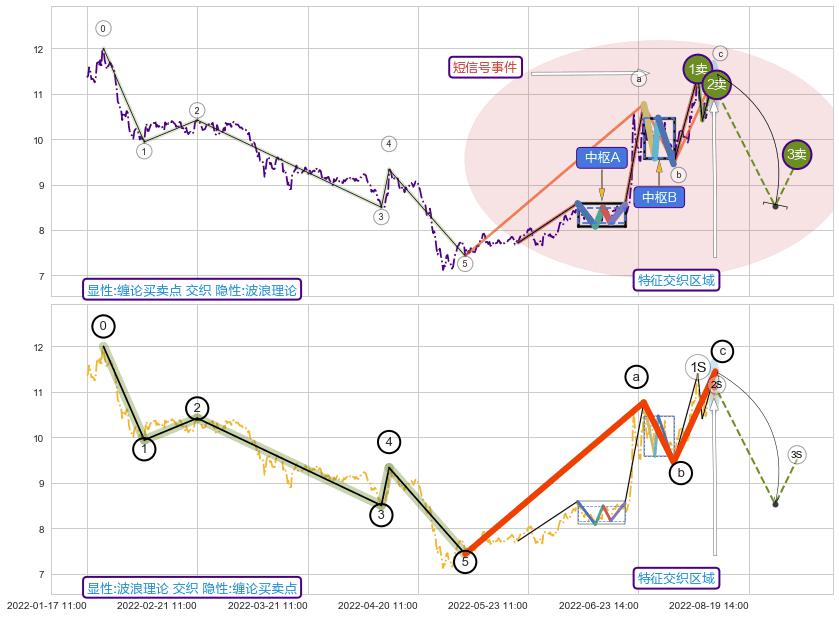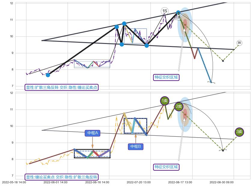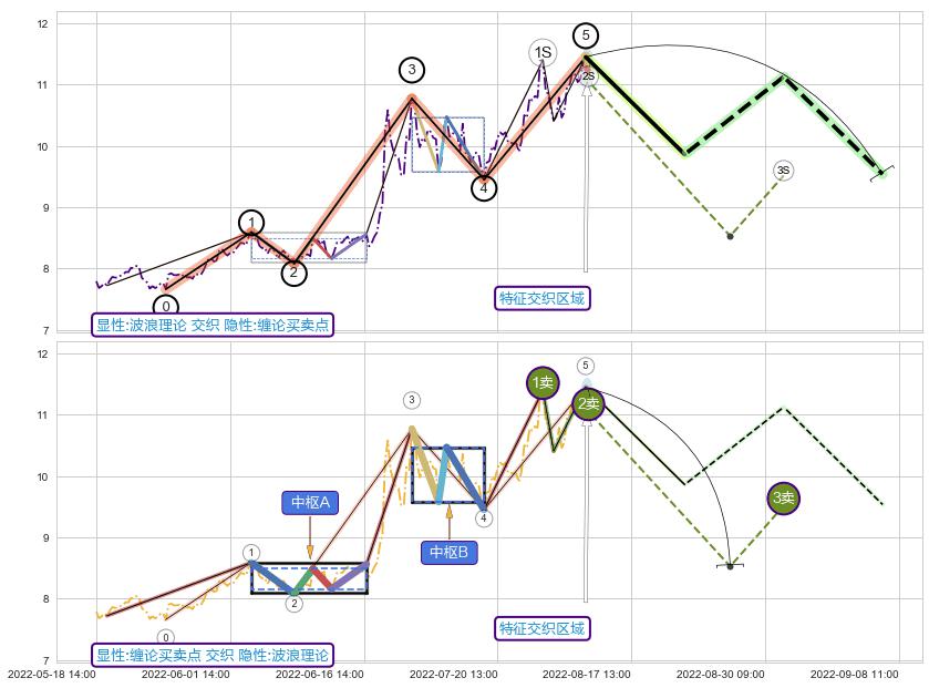 ➣ 缠论买卖点:猜想2卖持续蓄力下跌至3卖 → 下跌 → 风险信号 → 小趋势跟踪