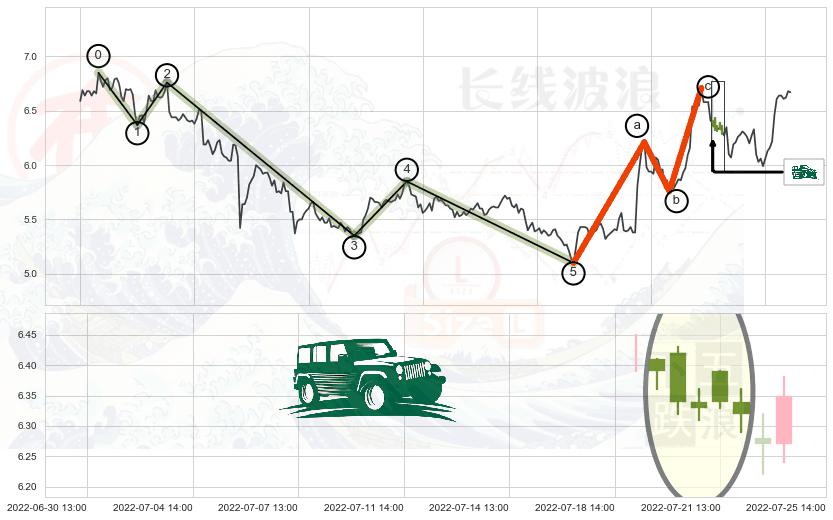 ➣ 波浪理论:猜想击穿突破c点后继续上涨 → 上涨 → 机会信号 → 小趋势跟踪
