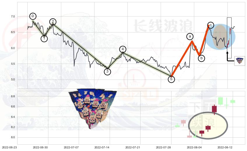 ➣ 波浪理论:下跌5浪延续:猜想C点强阻力小反弹终止,猜想保持下跌5浪方向下行(均值回复后大周期继续趋势跟踪)