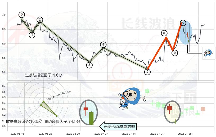 ➢ 🕰 价格走势在2022-07-25 13:00:00至2022-07-25 13:00:00期间形成单针探底(定海神针),残存影响值:2.96