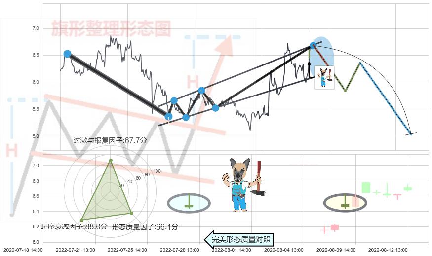 ➢ 🕰 价格走势在2022-08-09 13:00:00至2022-08-09 13:00:00期间形成看跌(高位倒锤头)流星线,残存影响值:-7.13