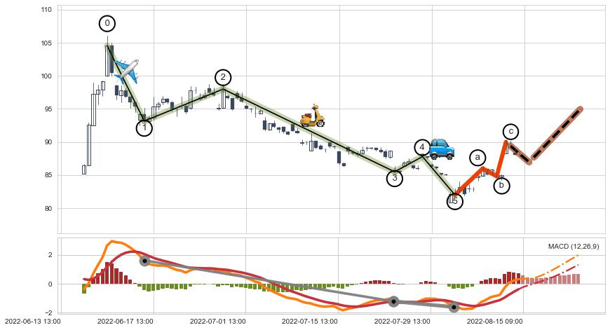 ➢ 波浪理论:猜想b点持续蓄力上涨至c点 → 上涨 → 机会信号 → 小趋势跟踪
