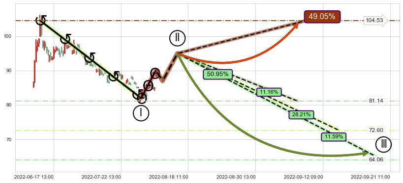 ➢ 循环浪继续向下【最低】位置(09-21:11, 64.06),匹配聚类样本比例22.74%, 可能性概率11.59%