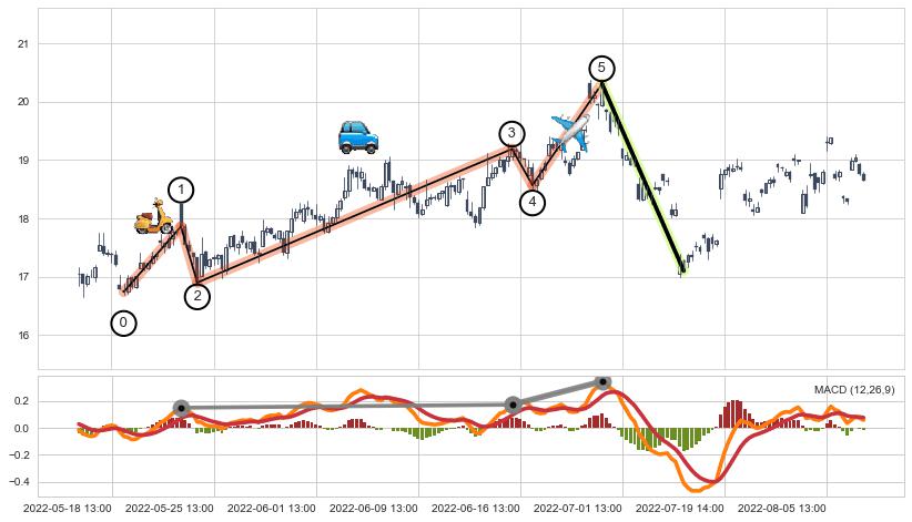 ➣ 波浪理论:猜想达到c点后小回调终止反转上涨 → 上涨 → 【拐点】临近 → 阶段均值回复结束后继续大周期趋势跟踪